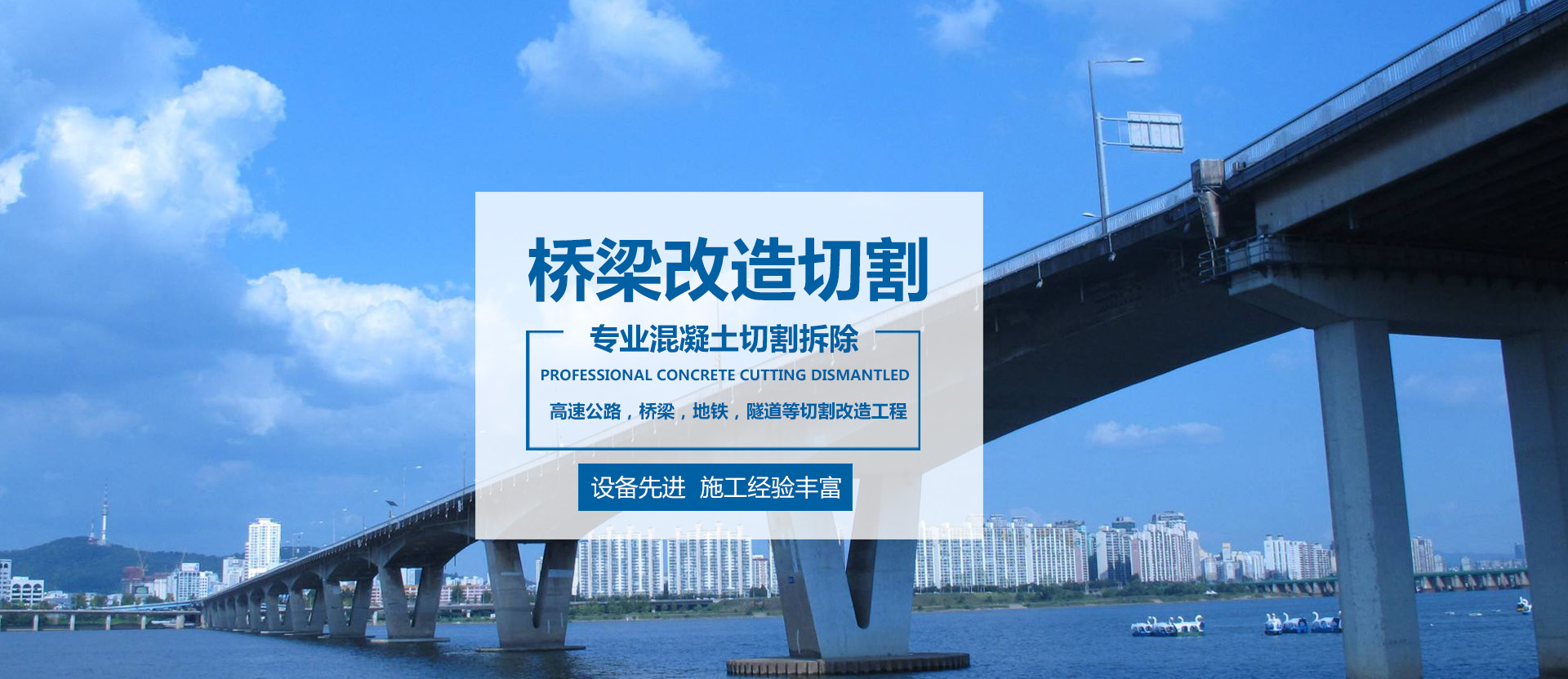 專業承接建筑物切割拆除、橋梁切割拆除、地鐵支撐梁切割拆除、水下切割拆除、隧道切割拆除、高速公路路面切割拆除等工程的鋼筋混凝土切割施工